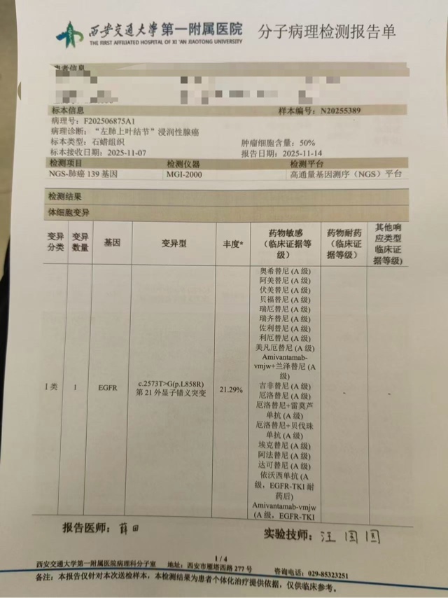 闯关老师,我妈妈的基因检测结果出来啦,能否请您帮忙看下,是egfr21,丰度20,请问您这种是不是耐药会比较快呀,谢谢您!